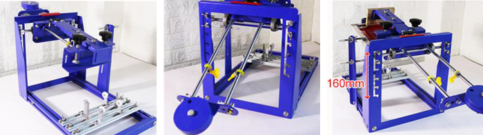 8. Squeegee rack use self-tapping fixed wooden handle scraper, and it is suitable for the length of less than 200 mm wood handle scraper. The rack can be moved about 250mm according to the position of the pattern of the screen plate.